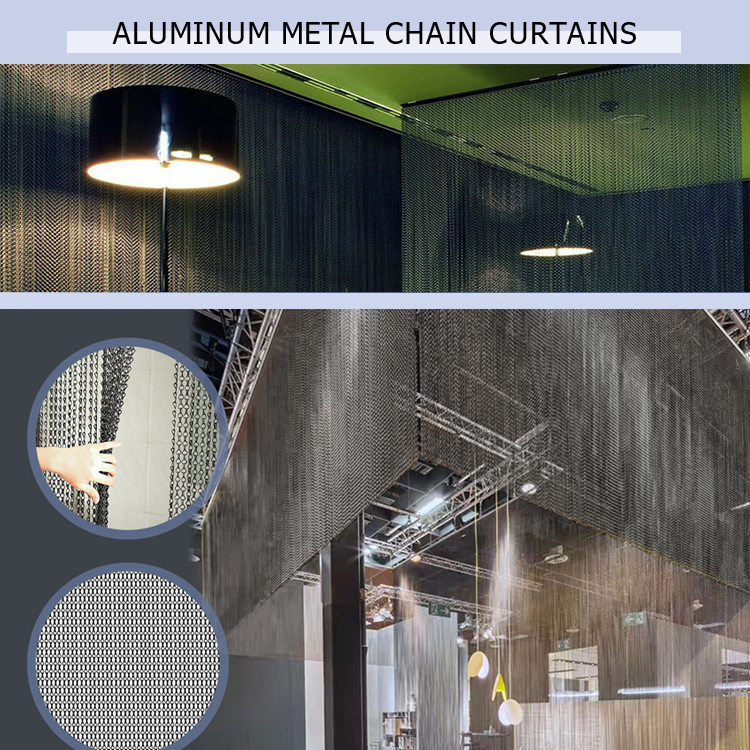 Metallic Curtains is also called aluminum chain curtain,chain fly screen, Chain link curtain. It is produced of 100% aluminum materials and has excellent quality. The product has the characteristics of durable, gorgeous and high-end, high technology content, etc. And it also has the advantages of lightweight,simple structure and convenient installation.It is relative to the iron curtain, chain mail curtain, is more in line with the preferences of the new era.It applied to various occasions, purposes, highlighting the elegant temperament, extraordinary personality, and noble taste.